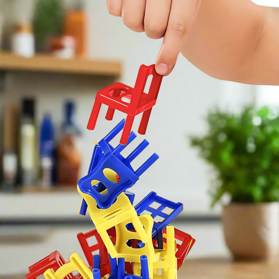 - Enhances Focus and Coordination: This game helps children improve their fine motor skills, hand-eye coordination, and concentration as they carefully balance each chair.