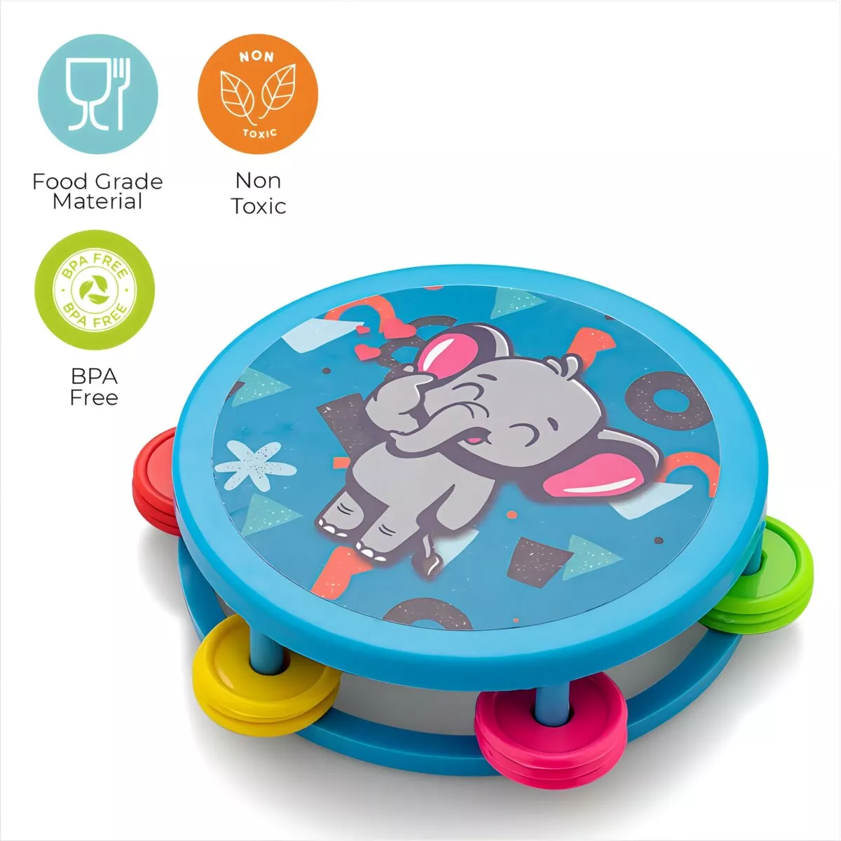Colorful rattle with a traditional design, ideal for sensory play and auditory stimulation.