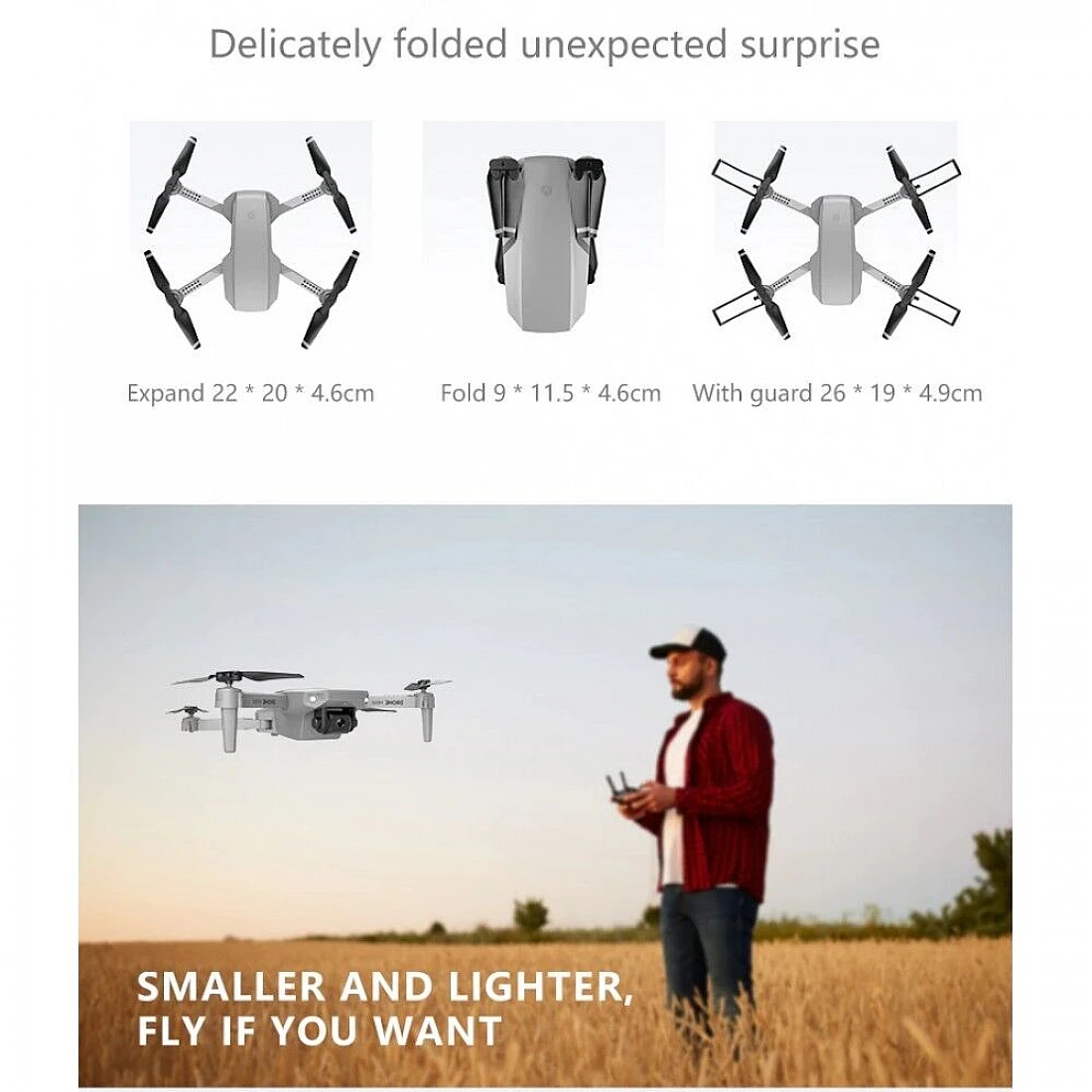 This drone is equipped with dual cameras for both high-definition photos and videos from different angles, allowing you to capture breathtaking shots from the sky 🎥✨. Its compact design makes it easy to carry, while the powerful single battery ensures long-lasting flight time for endless fun 💡. Whether you’re exploring new heights or simply having fun, the E88 offers smooth and stable flight control for both beginners and experienced pilots 🌟.