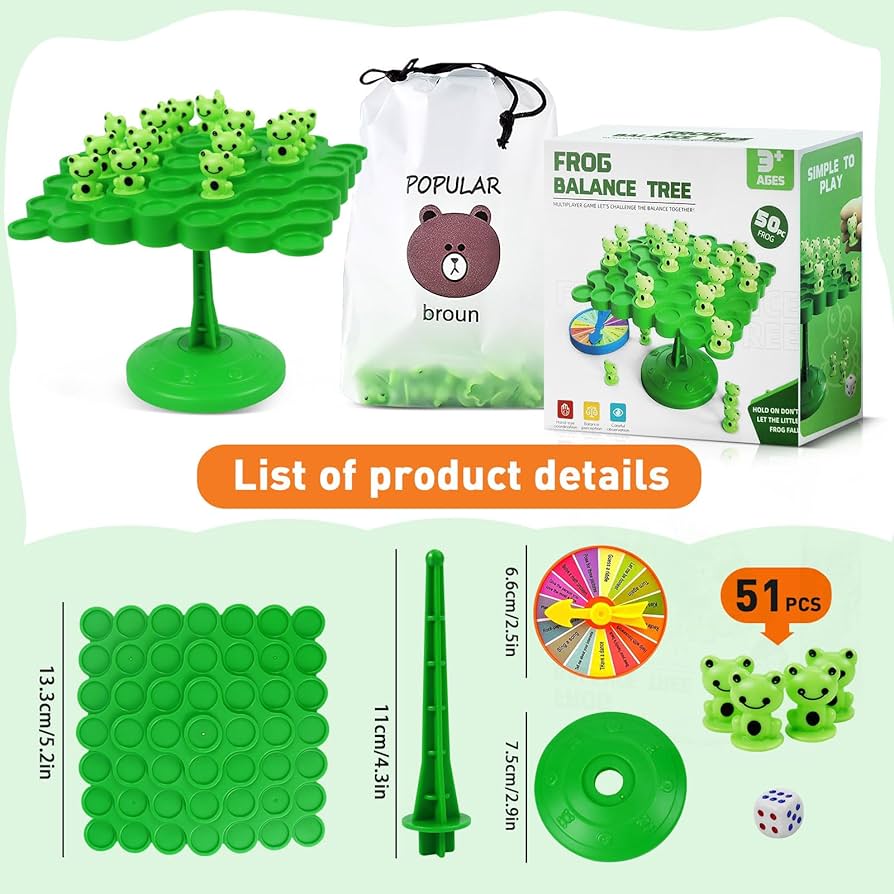 - Balance Game: The objective is to balance the frogs on the tree without tipping it over, teaching children the principles of balance and stability, while improving hand-eye coordination and concentration.