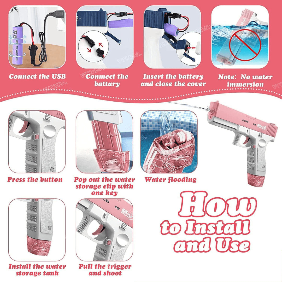 Take your water battles to the next level with the High Pressure Electric Water Gun! Featuring a supercharged motor and powerful performance, this electric water blaster delivers endless fun with a continuous stream of water, perfect for outdoor play.
