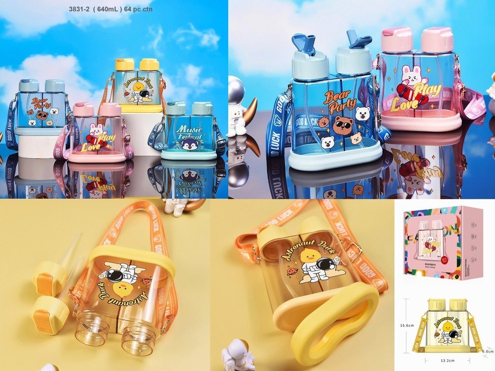 Stay refreshed and organized on the go with the Play Love 2 in 1 Multi-Purpose Water Bottle! This innovative and stylish bottle allows you to carry two beverages at once, making it the ultimate travel companion for school, gym, outdoor adventures, or work. With its sleek and ergonomic design, this bottle is not only functional but also easy and comfortable to carry, thanks to its convenient strap and lightweight construction.