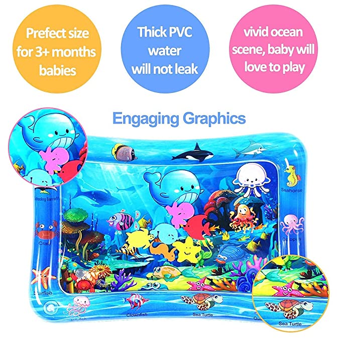 - Tummy Time Fun: Ideal for tummy time, this water play mat helps strengthen your baby’s neck, shoulders, and arm muscles while promoting sensory development.