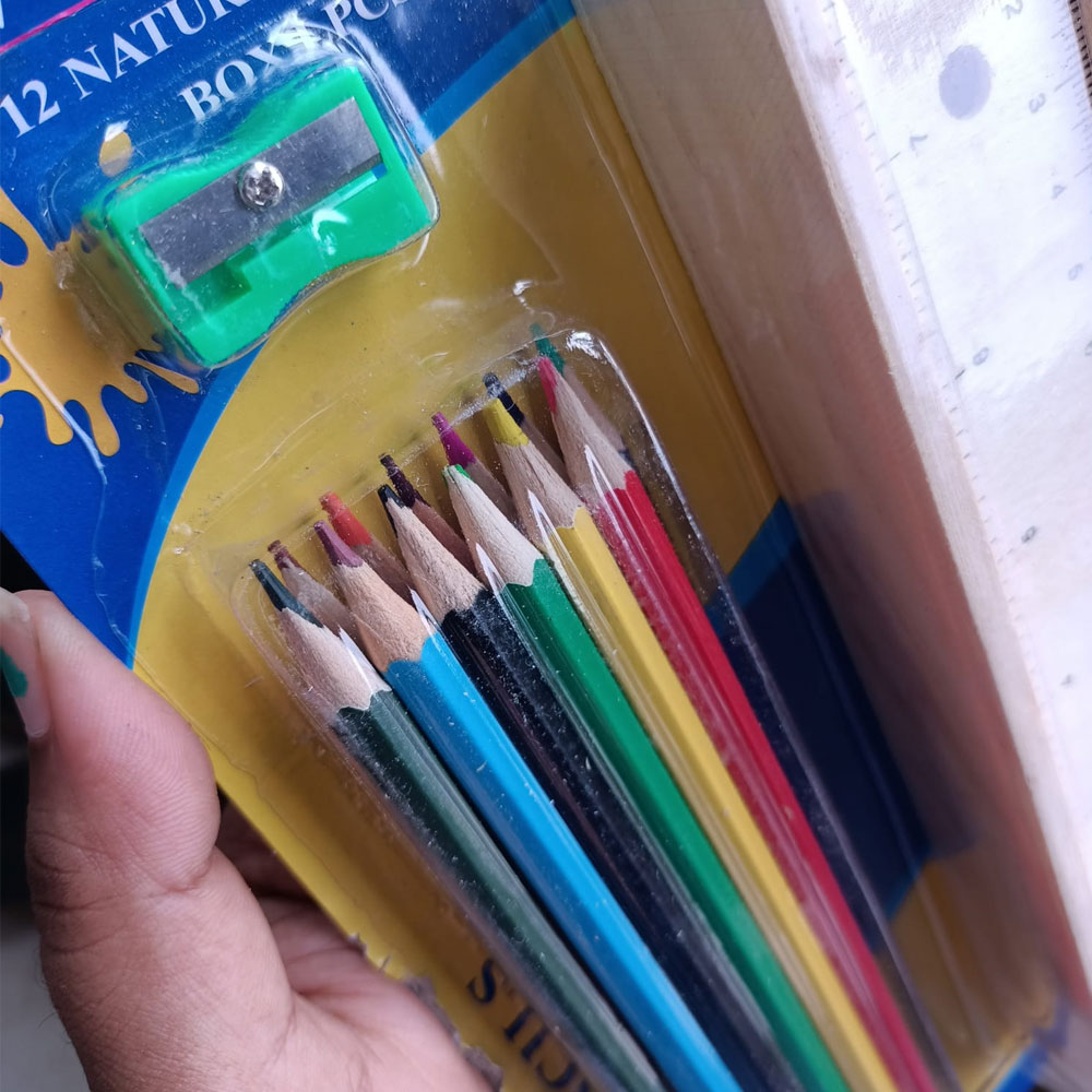 Unleash your artistic potential with the Wooden Color Pencil Set! This versatile set includes a range of vibrant color pencils, a sharpener, and a scale—everything you need for sketching, coloring, and drawing, whether you’re at home, school, or on the go.