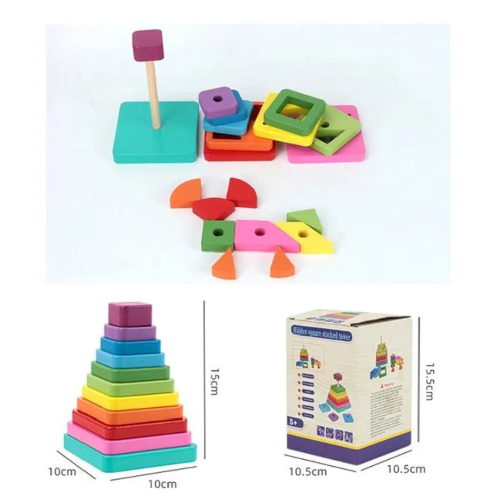 The Wooden Square Rainbow Stacking Tower is not just a toy; it’s a delightful way to support your child’s development while encouraging creativity and imaginative play.